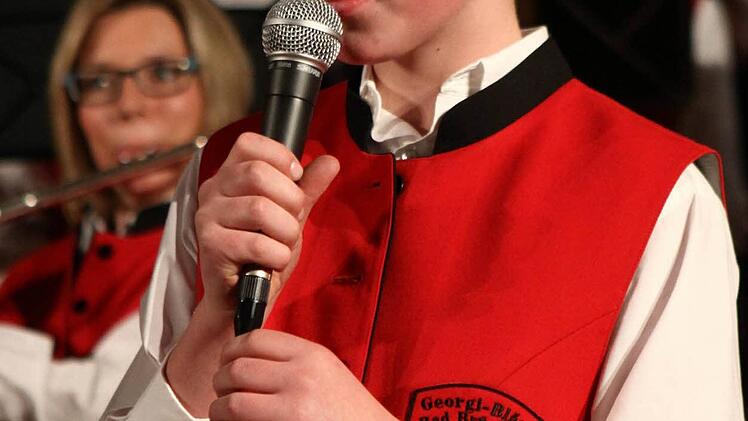 Dass bei den Georgis die Nachwuchsarbeit groß geschrieben wird, bewiesen nicht nur die beiden Dirigenten des Abends, auch Lukas Breitenbach erlernte hier mit sechs Jahren das Trompete spielen, sondern auch das Stück "La Bamba", zu Gehör gebracht von den Junior Georgis, unter Leitung von Manuela Möller. Erneut als Solosänger glänzen durfte der elfjährige Junior Georgi Raphael Spahn. Seine Interpretation von "Ich gehör nur mir" aus dem Musical Elisabeth brachte den Zuhörern Gänsehaut und Standing Ovations für den mit einzigartiger Hingabe singenden Raphael.