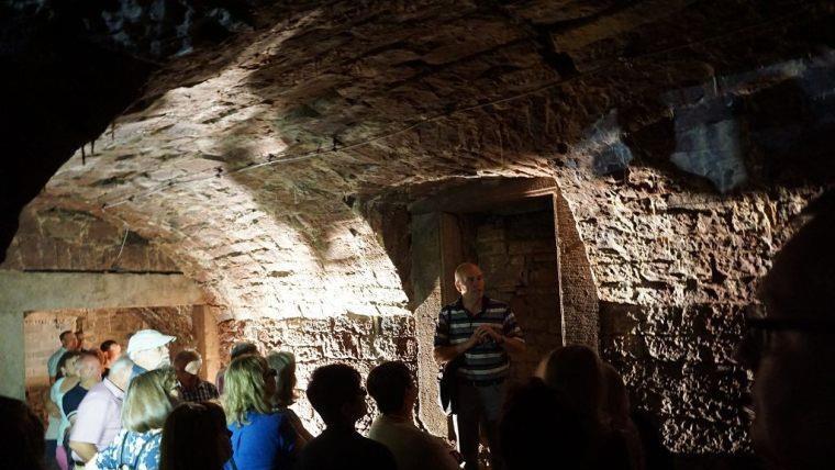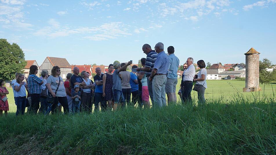 Der "Blaue Turm" ist das älteste Gebäude im Ortes aus dem 14. oder 15. Jahrhundert. Es war früher wohl der Turm einer Vogtei. Seinen Namen hat er von der Blaufärbung des Wassers im Turm. Eine Schlossbrauerei hatte Weißenbach von 1826 bis 1884. In dieser Zeit wurden die unterirdischen Keller der ehemaligen Zentscheune als Eiskeller verwendet. Besichtigt wurde auch ein Teil der Keller. Der Eingang befindet sich unter der Evangelischen Kirche, die einst Zentspeicher war und 1680 zu Kirche umgebaut wurde. Die Weiher sind künstlich angelegt worden, um Eis für die Eiskeller, zum Kühlen von Bier und Wildbret zu haben. "Viele Geschichten gäbe es zur Geschichte von Weißenbach zu erzählen", sagte Müller immer wieder.