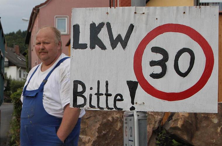 Günter Heinz ist klar, dass die Lkw vom Gewerbegebiet Buchrasen irgendwo langfahren müssen. Heinz will, dass das Tempo gedrosselt wird: 30 Kilometer pro Stunde für Lkw und 40 für Pkw. "Aber das wird wahrscheinlich nicht durchgehen." Und manch ein Bürger wünscht sich einfach die alten Schilder zurück. Dann würden zumindest die schweren Laster nicht mehr direkt durch den Ort kommen.