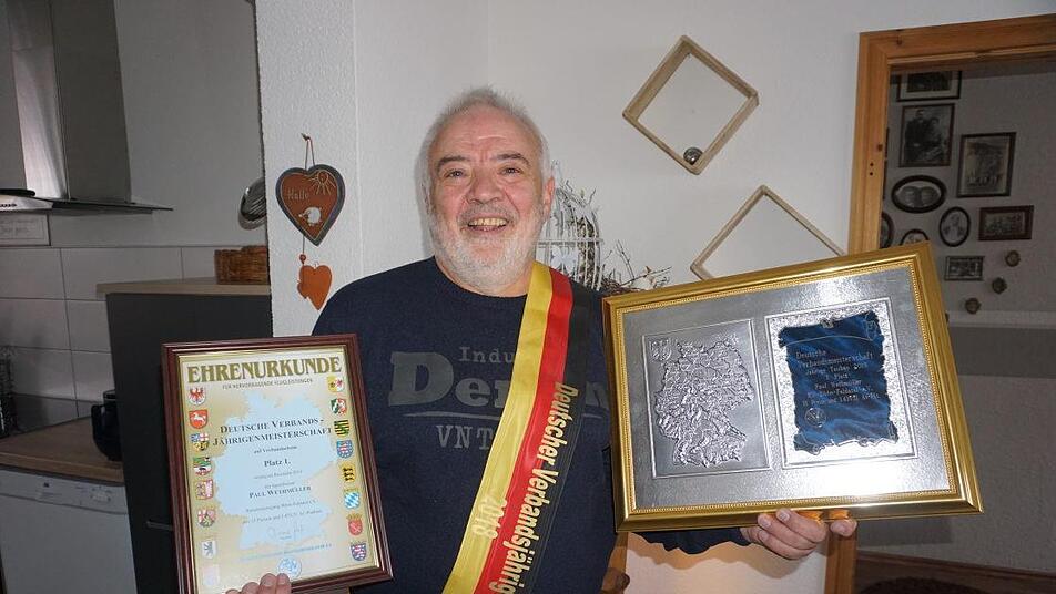 Seit seinem 10 Lebensjahr ist Paul Wethmüller (65) ein begeisterter Brieftaubenzüchter. Damals gab es noch viele Brieftauben in Oberelsbach und der junge Paul holte sich in der Nachbarschaft Tipps, wie er eine Zucht aufbauen könne. Mit einigen wenigen Tieren begann er und ist seither ein erfolgreicher und leidenschaftlicher Züchter. Den bisherigen Höhepunkte seiner Zuchttätigkeit konnte er vor wenigen Wochen feiern. Paul Wethmüller ist der erste Brieftaubenzüchter Bayerns, der den Deutschen Meistertitel erringen konnte. Er wurde Verbandsmeister der Jährigenmeisterschaft des Verbandes Deutscher Brieftaubenzüchter.