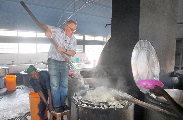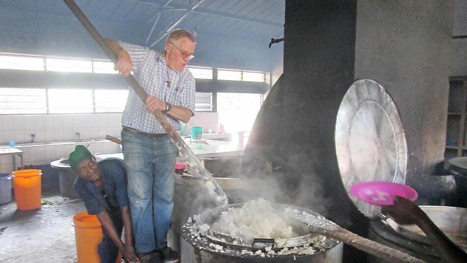 "Beim Zuschneiden von Gemüse konnte ich allerdings keine große Hilfe sein", erinnert sich der ehemalige Sternwirt. Die afrikanischen "Küchenwerkzeuge" seien nichts für europäische Hände gewesen: "Damit kam ich nicht richtig klar." Kapituliert hat der Rhöner mehrfach auch vor den riesengroßen Kochkesseln, bei denen kleine Baumstämme als Rührlöffel dienten. "Dieser Aufgabe war ich im wahrsten Sinne des Wortes einfach nicht gewachsen."