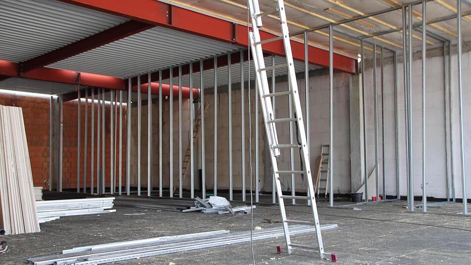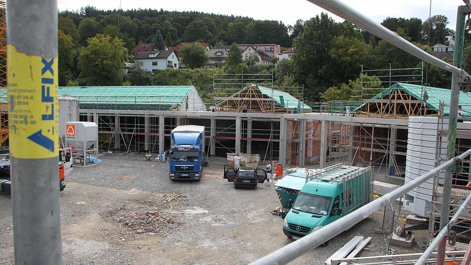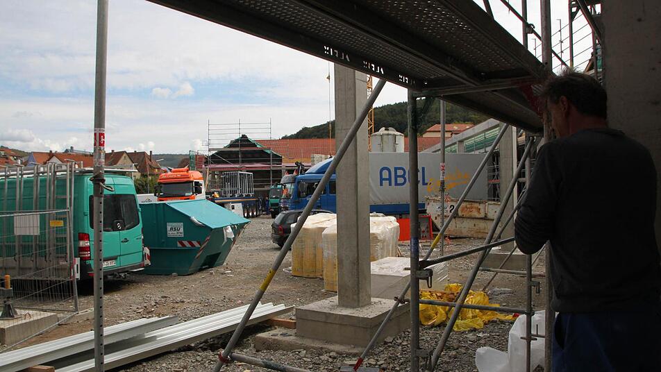 Wer nicht täglich durch die Sinnaustraße fährt, ist erstaunt, wie schnell die Gebäude in die Höhe wachsen. "Den Rohbau haben wir am 8. August abgeschlossen", sagt Baustellenleiter Joachim Günzel. Fast 30 Leute arbeiten zur Zeit am neuen Fachmarktzentrum, von Verputzern über Trockenbauer bis hin zu Elektrikern ist alles dabei.