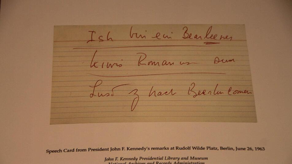 Geschenke bewundert Sie alle schlendern durch die Räume, in denen die Bundesminister ihre Entscheidungen treffen, oder bewundern die Geschenke von Staatsgästen, die im Kanzleramt ausgestellt sind. In einer Vitrine ist ein einzelner Zettel zu sehen. "Ish bin ein Bearleener" steht darauf. Es sind die Worte, die John F. Kennedy am 26. Juni 1963 vor dem Rathaus Schöneberg den Menschen in West-Berlin zusprach, und die ihn unsterblich gemacht haben.