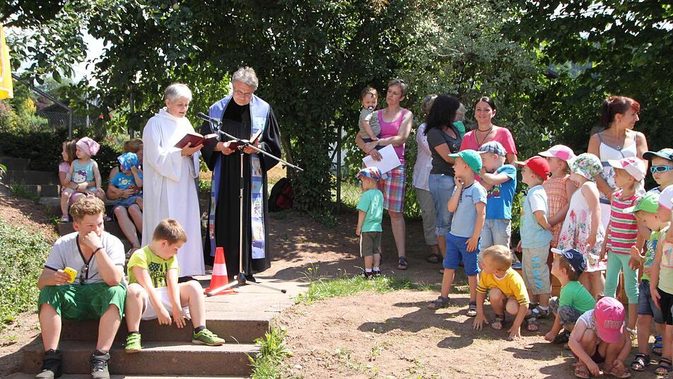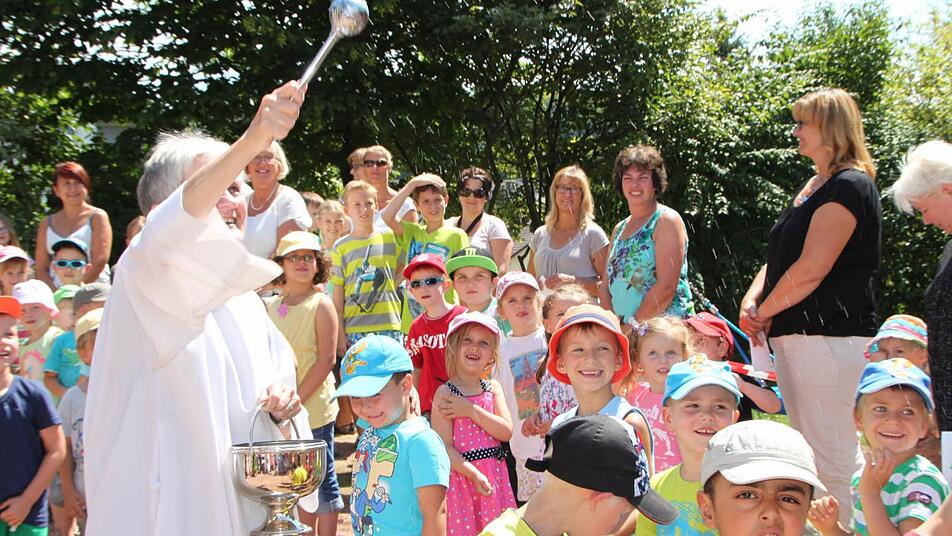 Bevor die Kinder aber ihr neues Reich in Besitz nehmen dürfen, segnen die katholische Gemeindereferentin Johanna Schießl und der evangelische Pfarrer Gerd Kirchner den Platz. Sie bitten Gott um Schutz für die spielenden Kinder und um Weisheit für Eltern und Erzieher. Dann greift Schießl zum Weihwasser. Großzügig verteilt sie das erfrischende Nass auf Groß und Klein. Zum Abschluss singen die Kinder ein Lied - sie haben es mit den Erziehern für den großen Tag gedichtet.