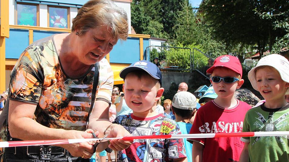 Ein Schnitt, und das rot-weiße Band fällt. Die Kinder stürmen los, alle wollen auf den neuen Spielplatz. Es ist ein Gedränge, die Freude steht den Kindern ins Gesicht geschrieben. Aber nicht nur für die Kinder ist der Freitag ein Freudentag. Leiterin Alexandra Wirth und ihr Team haben lange darauf gewartet, dass der Spielplatz des Kindergartens Regenbogenland erneuert wird.