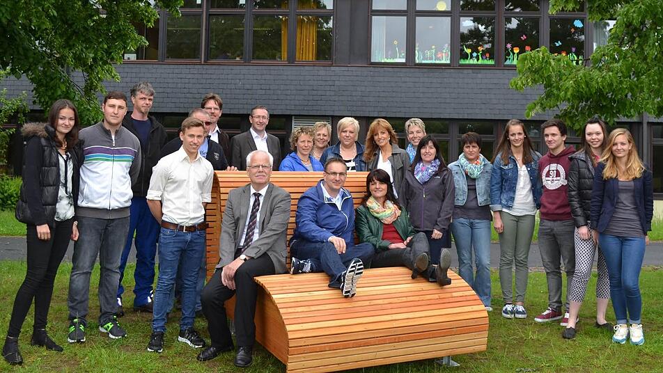 Im Schulzentrum Römershag teilen sich Mittelschüler, Realschüler und Gymnasiasten einen Pausenhof. Den schmücken seit Kurzem Riesen-Bänke zum Sitzen, aber nicht Sitzen bleiben...