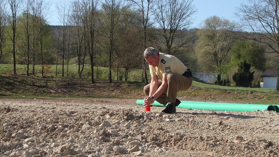 Alter Taufstein wird aufgestellt Nun ist auf dem Platz, wo früher die Kirche "St. Kilian und St. Ja kobus" stand, nur noch ein Haufen Erde zu sehen. Hier soll ein Dorfmittelpunkt mit einer klei nen Kapelle entstehen. Die Details des Rohbaus werden derzeit im Bauamt des Bischöflichen Ordinariats in Würzburg besprochen, teilt Pressesprecher Bernhard Schweßinger mit. Danach könne die Ausschreibung erfolgen.