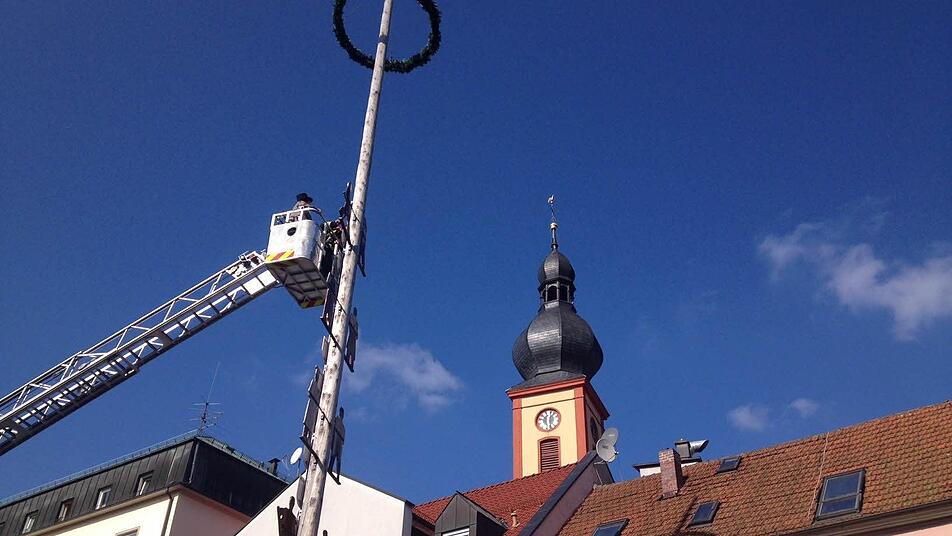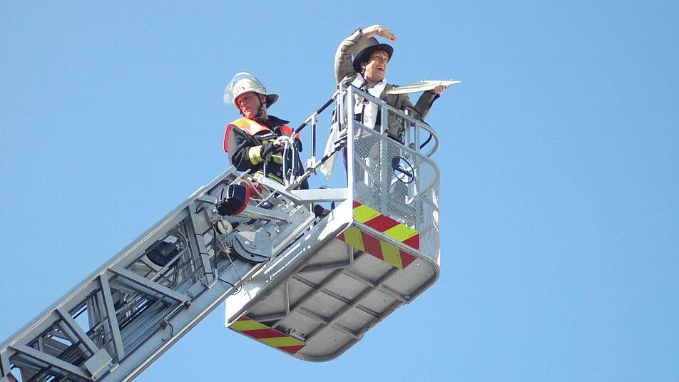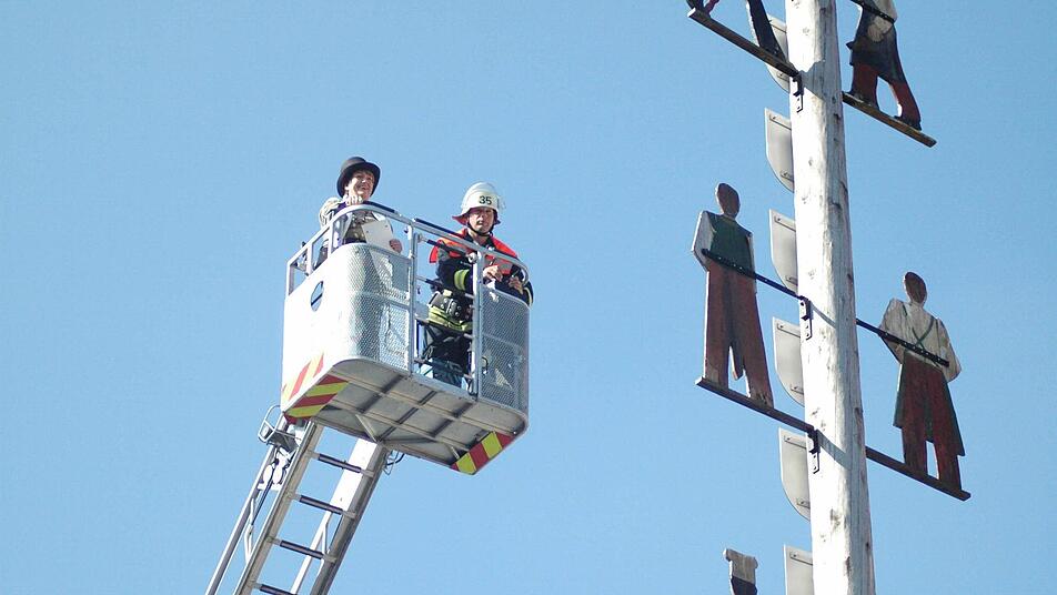 Da staunten selbst die erfahrensten Bad Brückenauer Tätsch'r nicht schlecht: Anlässlich des 125-jährigen Bestehens des Tätsch'r Vereins wagte sich die erste Bürgermeisterin Brigitte Meyerdierks in luftige Höhen und ließ sich von der Bad Brückenauer Feuerwehr per Drehleiter mindestens auf halbe Höhe des Zunftbaumes befördern. Während die Zuschauer unten auf dem Marktplatz neugierig die Hälse streckten, brachte Meyerdierks flugs das fehlende Vereinsemblem der Tätsch'r an der letzten freien Stelle des Zunftbaumes an.