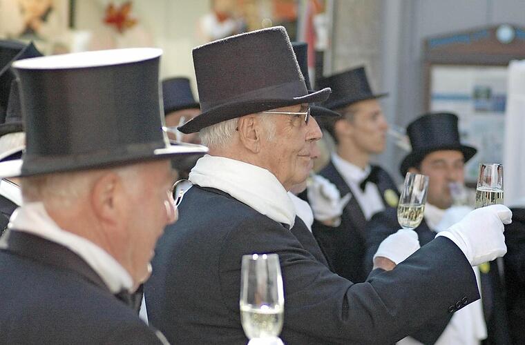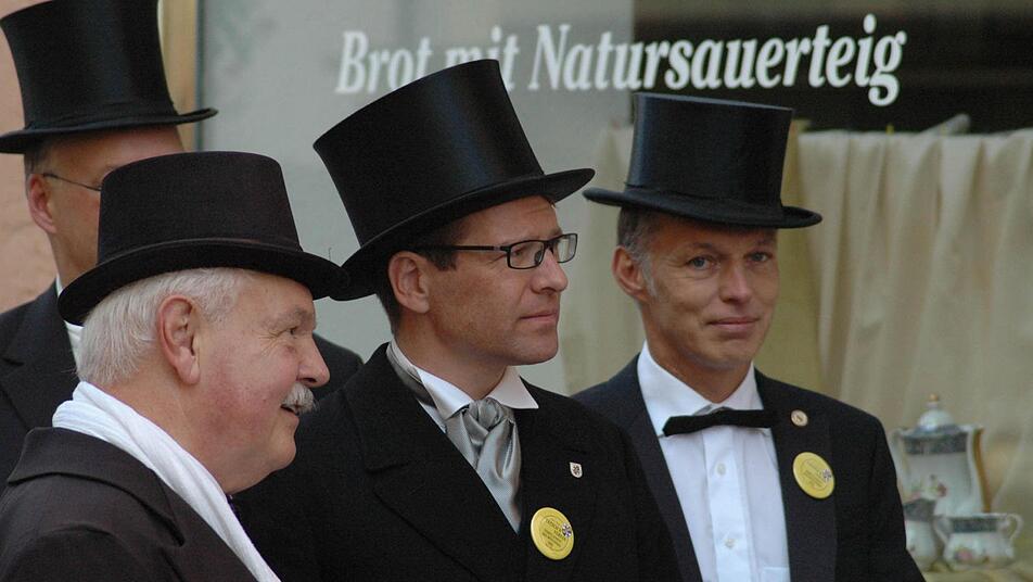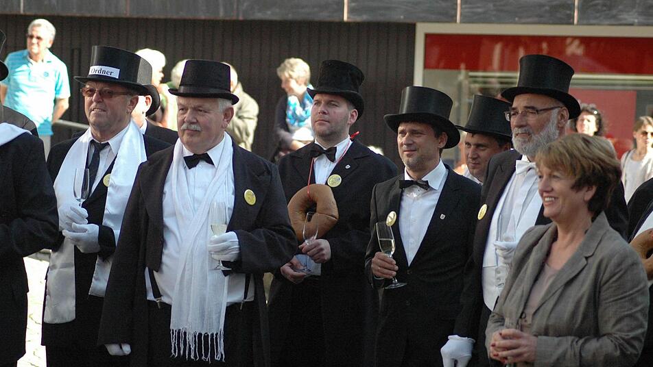 Traditionsgemäß hatten sich die Tätsch'r mit Frack, Fliege und Zylinderhut gekleidet und machten bei ihrem Festzug vor allem an Bauwerken halt, die der Verein selbst errichtet oder gestiftet hatte: am Tätsch'r Brunnen am historischen Rathausplatz zum Beispiel. Die Erhaltung und Pflege alter Brückenauer Tradition, Brauchtum und Sprache hat sich der Verein auf seine Fahnen geschrieben. Darüber hinaus geht es den Tätsch'rn auch um die Verschönerung des Stadtbildes, um die Förderung von Kultur, Geselligkeit und Gemeinsinn. "Das soll auch in Zukunft so bleiben", machte Axel Zeier, der heutige Vorsitzende der Tätsch'r, deutlich.