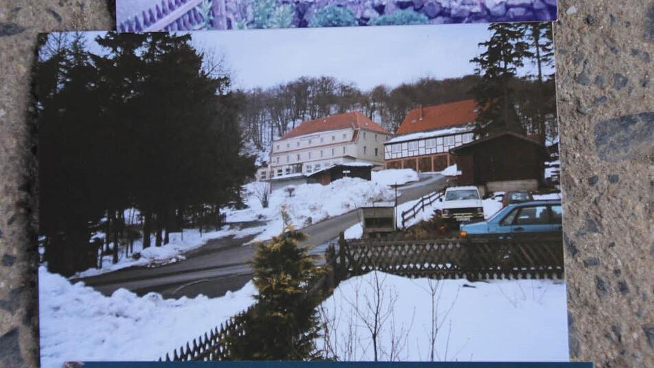 Diese Holzhütte unterhalb des Berggasthofs "Elisäus" hat ebenfalls Silvyas Großvater gezimmert, im Jahr 1937. Mit über 90 Jahren ist der als "Rhönfotograf" und "Kreuzberger-Sepp" bekannt gewordene Adolf Benkert Anfang des Jahrtausends gestorben. Und nun sind offenbar auch die Tage seiner Verkaufshütte gezählt.