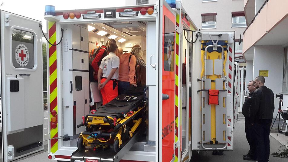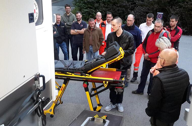"Die eigentlichen Neuerungen sind aber im Innenraum des Fahrzeugs zu finden", machte Vorndran bei der Einweisung für die Bad Brückenauer Sanitäter an mehreren Beispielen deutlich. Im Fokus der Überarbeitung für die 2017-er Generation habe die Überlegung gestanden, "dass die Einsatzkräfte im Patientenraum während der Fahrt möglichst durchgängig angeschnallt bleiben sollen und vom Sitzplatz aus alle wesentlichen Funktionen des Aufbaus bedienen können". So sei jetzt beispielsweise die Kommunikation zwischen Fahrer und Betreuer ebenfalls vom linken Sitzplatz aus über eine Wechselsprechanlage möglich. Die Nutzbarkeit des rechten Betreuersitzes werde durch die Deckenableitung von EKG, Pulsoxymetrie und Blutdruckmessung deutlich verbessert. Zur Optimierung auf der Straße trägt darüber hinaus das neue Seitenkamerasystem bei, das unter anderem den aufbaubedingt nicht möglichen "Schulterblick" beim Abbiegevorgang ersetzt. Der Leiter der Rettungswache Bad Brückenau, Alexander Schelbert, und dessen Stellvertreter Stefan Koch zeigten sich anlässlich der Übergabe natürlich sehr erfreut, dass den 16 hauptamtlichen und sieben ehrenamtlichen Rettungskräften vor Ort jetzt ein hochmoderner Wagen zur Verfügung steht. Beide blickten kurz auf das vergangene Jahr zurück, in dem insgesamt 3954 Einsätze zu absolvieren waren. Davon entfielen 529 auf Notfälle und 611 auf Notarzteinsätze. Der Rest betraf Angelegenheiten ganz unterschiedlicher Art wie beispielsweise ganz normale Krankentransporte und andere Beförderungsfahrten. Für alle Standorte im Landkreis Bad Kissingen weist die Statistik im Jahre 2016 für das Rote Kreuz 24.340 Einsätze aus, bei denen zusammen 798.883 Kilometer gefahren wurden.