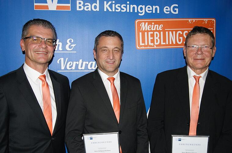 Zwei Mitarbeitern hat Michael Kaiser, Vorstand der VR-Bank Bad Kissingen, zur 40-jährigen Betriebszugehörigkeit gratuliert: Wolfgang Kleinheinz und Bernhard Wagner begannen beide am 1. August 1978 ihre Arbeit. "Die Welt hat sich in den letzten 40 Jahren drastisch verändert, die Bank auch. Und diese Veränderung verdanken wir jedem einzelnen Mitarbeiter", erklärte Kaiser.