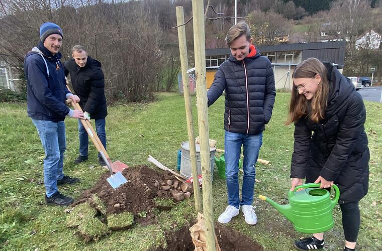"Wenn ich wüsste, dass morgen die Welt unterginge, würde ich heute noch ein Apfelbäumchen pflanzen", soll Martin Luther einst gesagt haben. Diesen Spruch hörte die frühere 6. Klasse des Franz-Miltenberger- Gymnasiums Bad Brückenau seinerzeit von ihrem Lehrer Dirk Hönerlage im Schulfach "Evangelische Religionslehre". Und setzte ihn jetzt - zugegebenermaßen mit gewisser zeitlicher Verzögerung, jedoch erklär- und entschuldbar sowie umständehalber bedingt - fünf Jahre später vergangenen Dienstag in die Tat um.