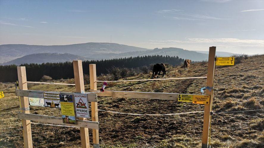 Dafür sorgen Paul und Christiane Schönner aus Frankenheim nun schon seit 2006 mit einer großflächigen Beweidung mit Pferden, Esel und Co. Dass dieses Beweidungskonzept auch Kritiker auf den Plan rief, gehörte von Anfang an für die Schönners zum Tagesgeschäft. Ein Kritikpunkt war der Zaun entlang des Trampelpfades von der Würzburger Hütte bis nach Oberweißenbrunn. Auf etwa 300 Meter wurden Wanderer und Mountainbiker auf einer vergleichsweise engen Trasse zwischen zwei hohen Elektrozäunen geleitet. Kein schöner Anblick und für die Fahrer nicht einfach zu bewältigen.
