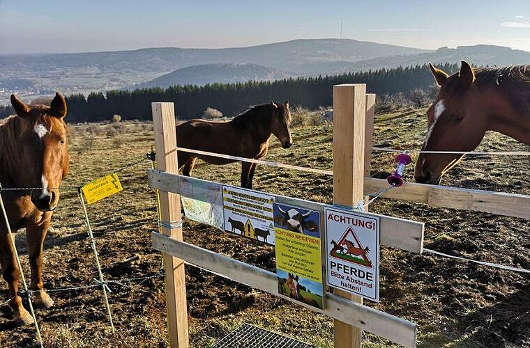 Nun haben Schönners Ende August zwei versetzte Gatter aufgestellt und die Zäune entfernt. Wanderer und Mountainbiker können nun in die Weidefläche gelangen, den Bereich durchqueren, ohne von Zäunen eingeschlossen zu sein. Schönners setzen damit auf ein ähnliches Konzept, wie es von den Weideflächen in den Alpen bekannt und erprobt ist.