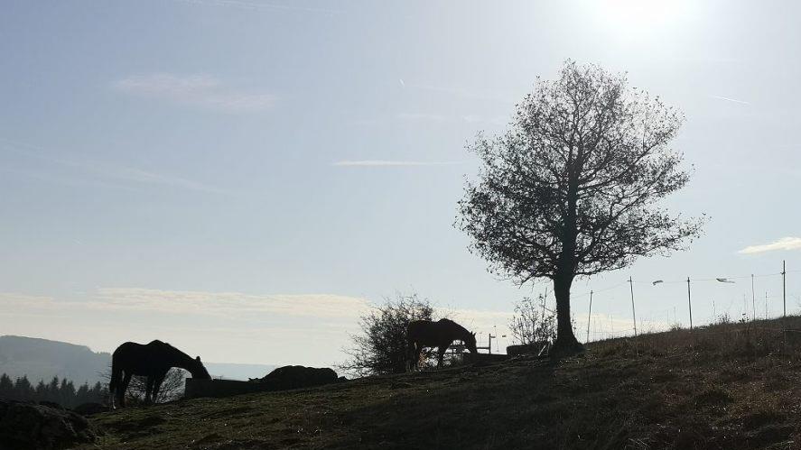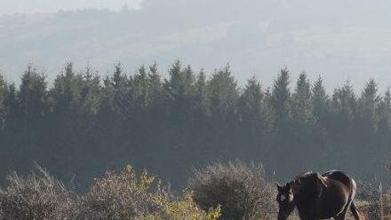 Nur ein leises Schnauben verriet, dass sich ein neugieriger Himmeldunkberg-Bewohner angeschlichen hatte. Im Licht der tiefstehenden, herbstlichen Sonne näherten sich dann nach und nach noch mehr Pferde. Leise, kaum wahrnehmbar waren die Tritte der unbeschlagenen Tiere auf dem weichen Boden am Himmeldunkberg zu vernehmen. Lästige Fliegen, die sich trotz des Windes auch vor Ort waren, wurden mit dem Schweifen locker beiseite gewedelt.