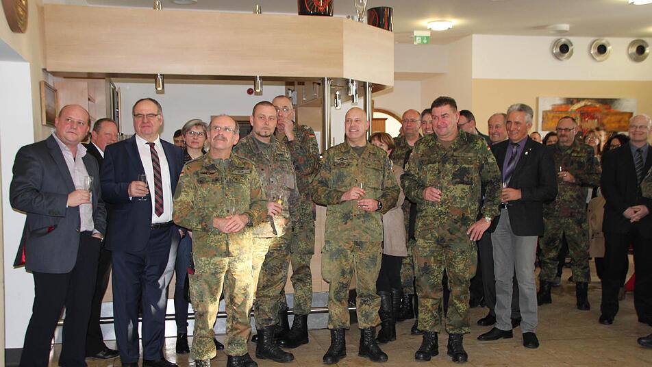 Matz lobt die Umsicht, den hohen persönlichen Einsatz und die fachlichen Kenntnisse, mit denen Peschel dieser Aufgabe nachgekommen sei. "Klagen haben mich nicht erreicht. Herr Peschel, alles richtig gemacht!", sagt Matz. Der Angesprochene nickt kurz, dann wendet sich Matz dem Neuen zu. "Jähnel ist in Unterfranken kein Unbekannter", betont Matz und geht auf wichtige Stationen im Leben des Oberstleutnants ein (siehe unten). Insbesondere für das Engagement während der sechs Auslandseinsätze bedankt sich Matz ausdrücklich. Er schließt - und der Satz fällt nicht nur einmal an diesem Tag - mit den Worten "Oberstleutnant Roman Jähnel ist auf dem neuen Dienstposten der richtige Mann am richtigen Platz".