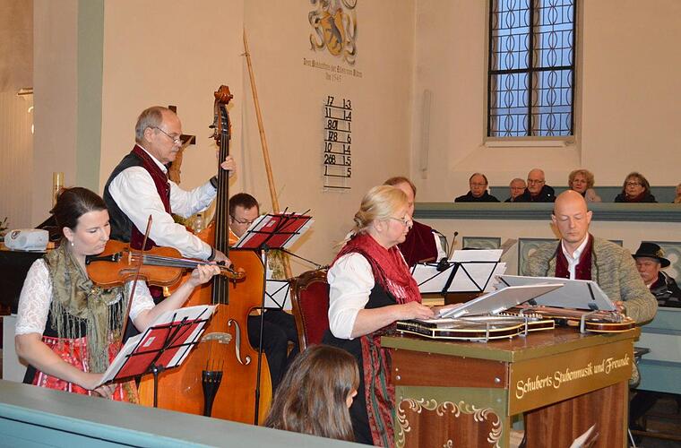 Gewohnt stilgerecht präsentierte sich die Familienformation aus Geroda mit Ingrid Schubert, Dr. Wilhelm Schubert, Kathrin Zitzmann, Kilian Schubert und Dr. Simon Schubert sowie Christoph Liebelt (Züntersbach), der von der Gründung an zu den Stubenmusikern gehörte. Ihre Vorträge lebten von einer spritzigen Mischung von kurzen Solosequenzen der verschiedenen Instrumente, die in eine harmonische Klangfülle mündeten.