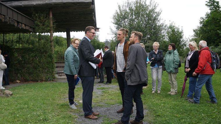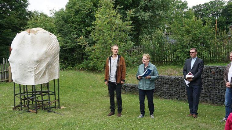 Die Vorsitzende des "Freundeskreis Franziskusweg", Monika Werner, und der Künstler selbst stellten mit einigen Gedanken die Skulptur vor, die die Menschen auf vielfältige Weise ansprechen könne. Leider konnte sie noch nicht an ihrem künftigen Standort aufgestellt werden. "Durch die feuchte Witterung konnte die Wiese nicht gemäht werden", erklärte die Vorsitzende. So steht die Skulptur derzeit noch neben der Franziskuskapelle.