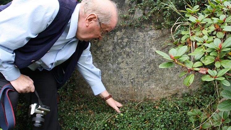 "Der Bus war damals voll", erinnert sich Marx an das große Interesse der Bad Brückenauer an der Fahrt nach Ober- und Unterweid. Ob es aber tatsächlich um Ernst Putz ging oder allgemein um die Situation in der DDR, könne er nicht sagen. Der Grabstein der Familie lag jedenfalls zunächst noch einige Zeit im Neuen Friedhof, bevor er unterhalb des Jüdischen Friedhofes aufgestellt wurde. "Ich glaube, Oskar Kirchner hat die Inschrift nachgefahren", sagt Marx. Zunächst sei der Gedenkstein gut gepflegt worden, in den vergangenen Jahren entstanden zu beiden Seiten Gräber und der Stein wuchs komplett ein.