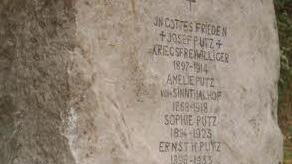 Bruder fiel im Ersten Weltkrieg Es handelt sich um einen 1,17 Meter hohen und 1,19 Meter breiten Findling, den vermutlich der Vater von Ernst Putz, der Bildhauer Sebastian Putz (1867 bis 1937) behauen haben dürfte. Dafür spricht auch, dass die Namensliste mit Sebastian Putz endet: Ganz oben steht der jüngere Bruder von Ernst, Josef Putz, der 1897 geboren war, sich freiwillig zum Ersten Weltkrieg meldete und 1914 fiel.