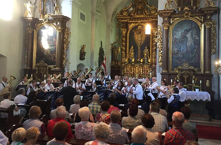 Das bekannte Liebeslied "Die Rose" kam sanft und einfühlsam, wie nicht anders zu erwarten, herüber und ging zu Herzen. "Ich wollte nie erwachsen sein - irgendwo tief in mir bin ich ein Kind geblieben" - wer kennt es nicht, dieses berührende "Nessaja" von Pater Maffay. Behutsam führte Dirigent Martin Kram seine Musiker durch die wechselnden rhythmischen Passagen. Als Solist kam er dann auch in "Die Post im Walde" mit seiner Trompete zu Gehör, einem bekannten Stück, das hohe Anforderungen in der höchsten Tonlage erforderlich macht. Natürlich fehlten "Ohrwürmer" der typischen Blasmusik-Literatur wie "Polka mit Herz" oder "Magische Momente" und der "Böhmische Frühling" nicht im Programm.