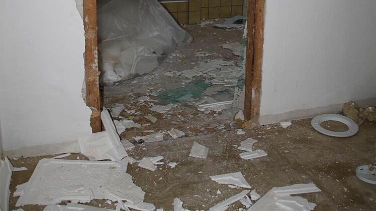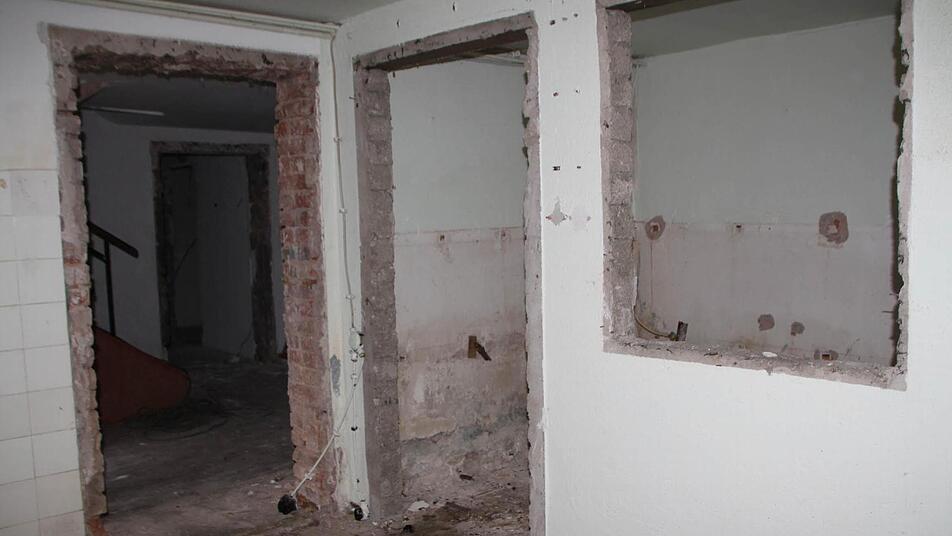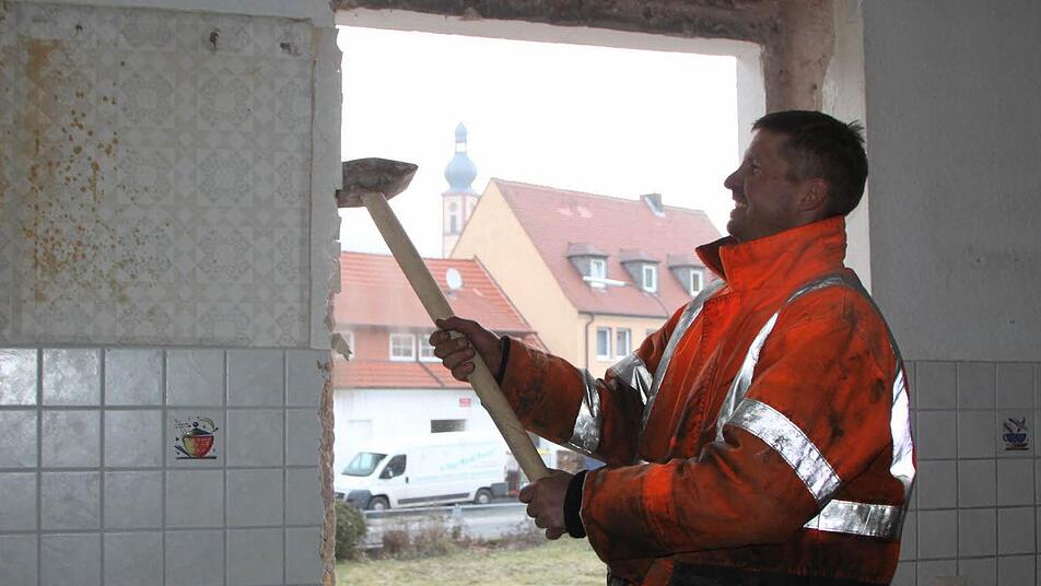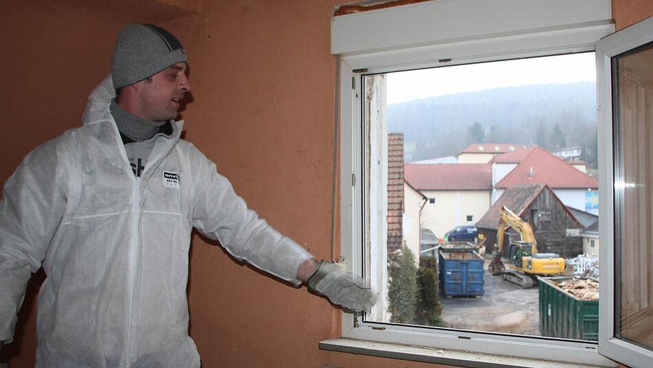 Ein Anwesen weiter auf dem Gelände der ehemaligen Molkerei "Eß" ist die Entkernung noch in vollem Gange. "Wir haben ziemlich viel Glaswolle hier, Gipskarton und Holz", erklärt Ronny Haas, der als Polier bei der Firma "Eckert Erdbau und Industrieabbruch" aus Lauda-Königshofen arbeitet. "Das muss ja alles gesondert entsorgt werden." Und tatsächlich: Ein Container ist schon fast voll mit Bauschutt und in der Ecke liegt säckeweise verpackter Müll herum.