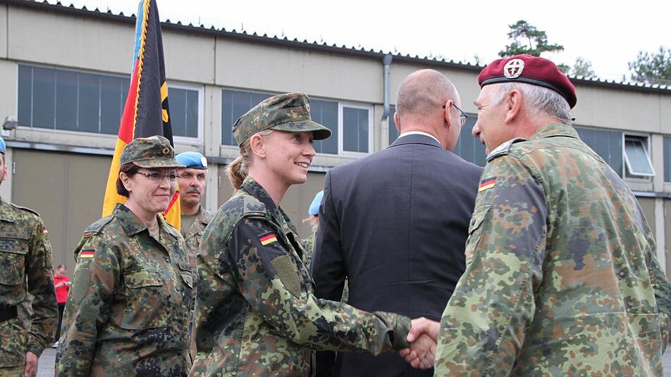 Am Rand sitzt Oberstleutnant Josef Taubeneder, der den Bereich Lehre und Ausbildung in Hammelburg verantwortet. "Es rührt mich an, immer noch", sagt Taubeneder, der schon 38 Dienstjahre auf dem Buckel hat. "Das ist ein Ausdruck ihrer Verbundenheit zu unserem Land. Ganz öffentlich und für alle sichtbar." Kinderwagen rollen über den Platz, Familien stehen zusammen, Fotos werden gemacht. Und Finni Spieth? "Es ist besonders, weil ich merke, wie viel Mühe und unheimliche Wertschätzung hier drinsteckt", sagt sie über den Tag, an den sie sich noch lange erinnern wird.