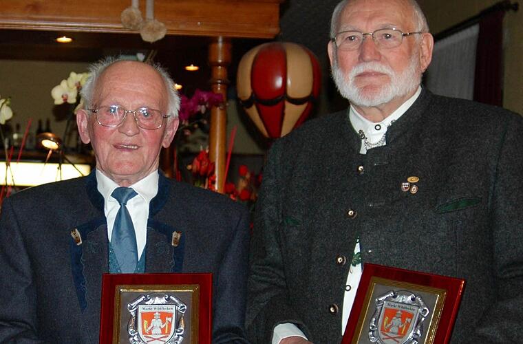 Die "Siebener", wie Feldgeschworene im Volksmund heißen, wirken bei der Markierung von Grundstücksgrenzen und eventuellen Streitfällen mit. Schrenk hob die Zuverlässigkeit und Sorgfalt der Geehrten heraus und dankte den Beiden für ihren jahrelangen Einsatz in der Marktgemeinde.