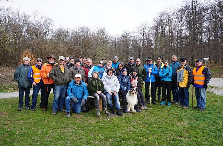 Alle zwei Jahre lädt Feldgeschworenen-Obmann Walter Vorndran Jagdgenossen, Feldgeschworen Gemeinderäte und interessierte Bürger zu einer Grenzbegehung ein. In diesem Jahr hatte er den Bereich "Wildflecken Ost" für die Teilnehmer vorbereitet. Treffpunkt war am Samstag Vormittag bei recht kühlen Temperaturen am Parkplatz Guckaspass. Die Teilnehmer waren gut ausgerüstet, ging es doch nicht auf Wanderwegen sondern querfeldein, quasi über Stock und Stein, um wirklich an der Gemarkungsgrenze entlang zu gehen. Lediglich zwei Bereiche wurden ausgelassen, da es zu steil für die Teilnehmer geworden wäre. In diesen Abschnitten hatte Vorndran zuvor optische Markierungen angebracht, um den Grenzverlauf zu verdeutlichen.