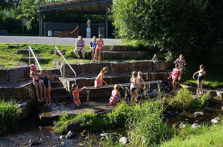Ein bei Kindern und Eltern beliebter Favorit ist der Wasserspielplatz in Bischofsheim. Gerade bei den warmen Temperaturen lohnt sich ein Abstecher zu der Anlage auf jeden Fall. Der Wasserspielplatz befindet sich direkt am Eingang zur Altstadt, gegenüber der Josefskapelle an der Straße zum Kreuzberg. Für Abkühlung sorgt das Kneipptretbecken in der Brend, das von Groß und Klein gerne genutzt wird. Direkt am Wasser gibt es außerdem eine archimedische Spirale für ausgiebige Spiele im und mit dem Wasser. Ein mit einem Sonnensegel überdachter Sandkasten, Sitzgelegenheiten, eine Slackline, eine große Liegewiese und eine überdachte Pergola ergänzen den Spiel- und Erholungsbereich.