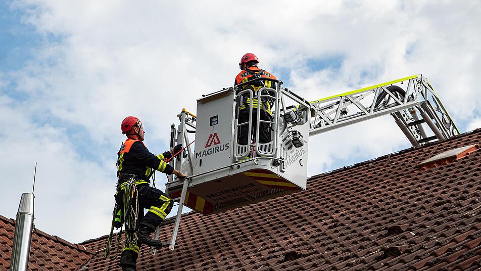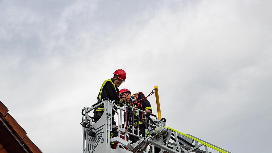 Die Absturzsicherung-Sets sind bei der Feuerwehr Bad Brückenau auf der Drehleiter und einem