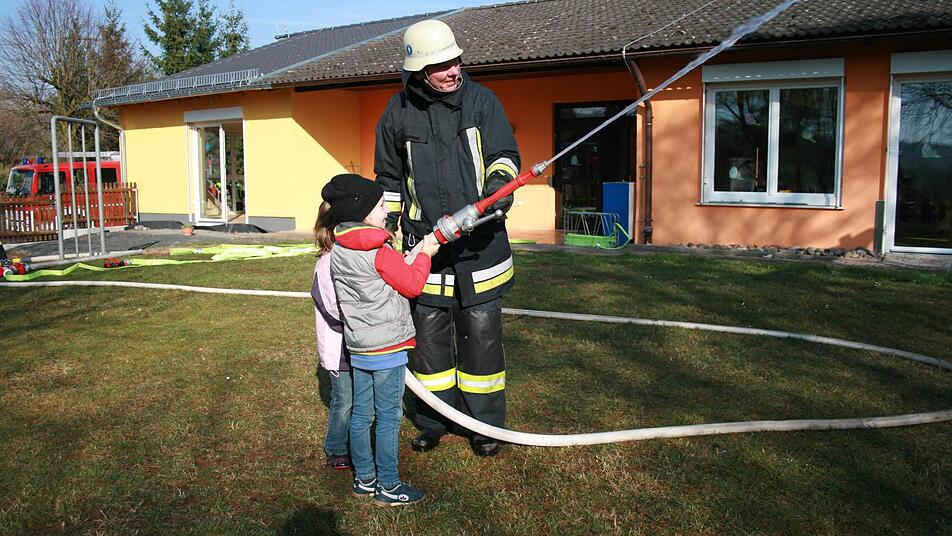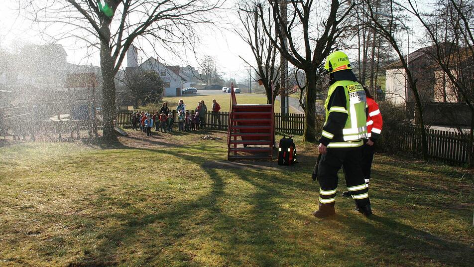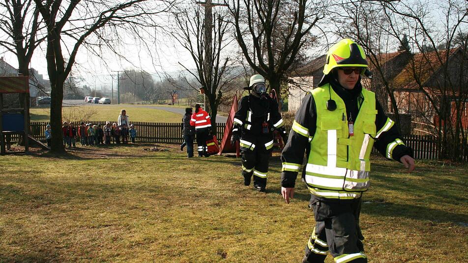 Alle zwei Jahre hält die Freiwillige Feuerwehr Geroda auch eine Übung im Kindergarten ab. Wichtig war diese insbesondere auch deshalb, weil sich durch den Anbau der Kinderkrippe im vergangenen Jahr neue räumliche Voraussetzungen und Fluchtwege ergeben haben.