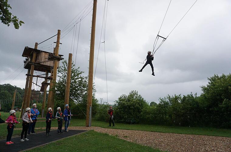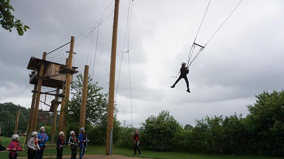 Jugendliche aus der Pfarreiengemeinschaft "Am Kreuzberg, Bischofsheim" lernen im Hochseilgarten, was die Firmung für sie bedeutet.