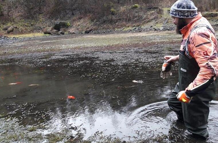 Fast unbemerkt kämpften rund 80 Fische im alten Steinbruch im Neuwirtshauser Forst ums Überleben. Dank schneller Hilfe kam die Hälfte durch.