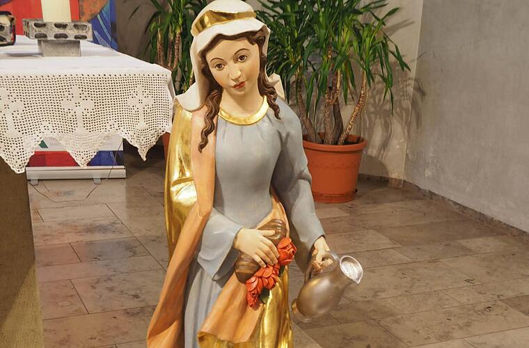 Sehr zart, sehr jung und äußerst filigran mit viel Liebe zum Detail gearbeitet, präsentiert sich die Hl. Elisabeth von Thüringen. Sie wird ihren Platz in der Schönderlinger St.-Josef-Kirche haben, geschaffen wurde sie von Günter Metz, Künstler aus Langenleiten, liebevoll bemalt von dessen Ehefrau Anni.