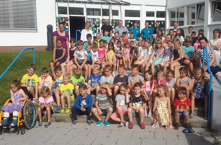 Ein langgehegter Wunsch ging für die Kinder und Lehrkräfte der Grundschule Schondra in Erfüllung. Vom Unternehmen Hanse Haus konnten sie jetzt als Spende mehrere funktionelle Sitzbänke entgegen nehmen.