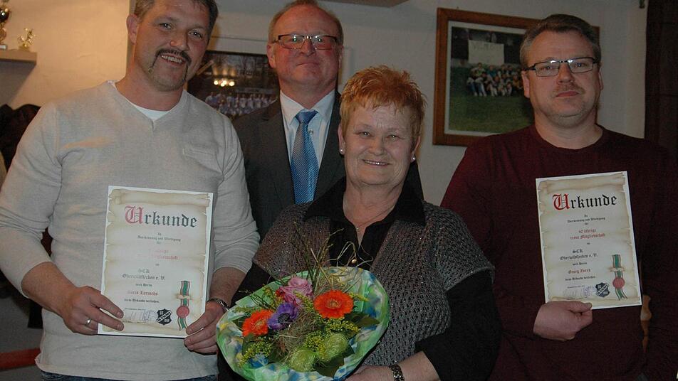 Ehrungen beim SV Wildflecken 25 Jahre: Kasimir Szyszka, Hubert Simon; 30 Jahre: Gerhard Lienert; 35 Jahre: Helene Hackl, Renate Heller, Andreas Kretschmann; 40 Jahre: Georg Zurek, Joachim Fritz, Boris Lormehs; 45 Jahre: Jürgen Heinrich, Wolfgang Illek: 50 Jahre: Roswitha Reder.