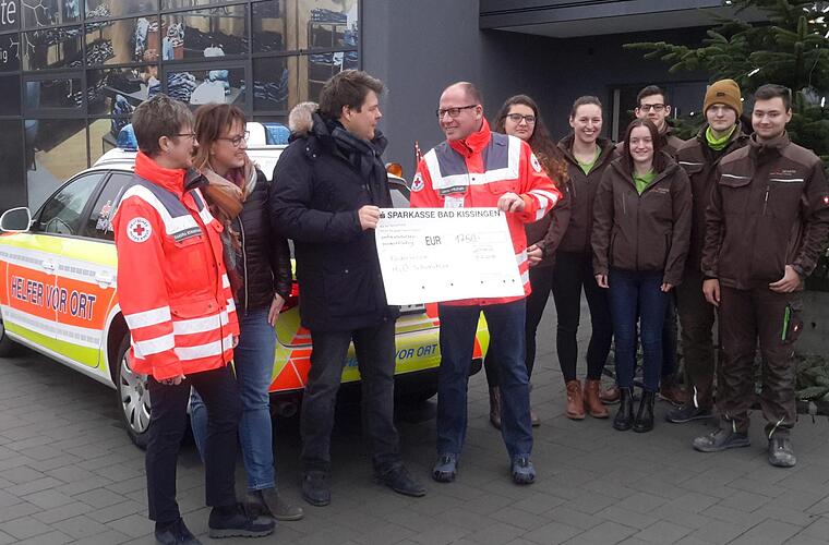 Den Weihnachtspavillon auf dem Bad Brückenauer Marktplatz hat die Firma Holzakzente der Stadt kostenlos zur Verfügung gestellt. Darüber veranstaltete das Unternehmen mit Sitz in Schondra rund um die Hütte einen eigenen Aktionsnachmittag, dessen Erlös für einen guten Zweck bestimmt war. Damit durch den Verkauf von Glühwein und Bratwurst sowie durch spontane Spenden der Besucher ordentlich Geld in die Kasse kam, hatte Firmenchef Matthias Schäfer bei seinen Geschäftsfreunden im Vorfeld ordentlich die Werbetrommel gerührt. Sein Engagement zahlte sich aus. Am Ende belief sich der Reinerlös auf 1750 Euro. Einen symbolischen Scheck über diese Summe konnte jetzt die HvO-Gruppe (Helfer vor Ort) Schondra in Empfang nehmen.