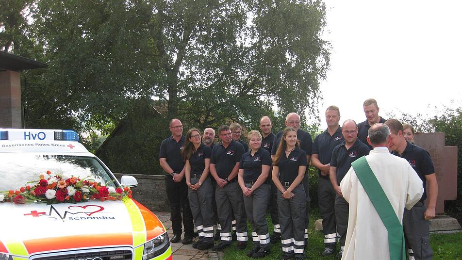 Das Einsatzfahrzeug der Helfer-vor-Ort(HvO)-Gruppe Schönderling wurde unter den Segen Gottes gestellt.