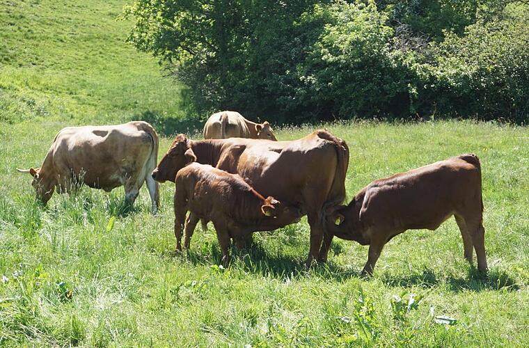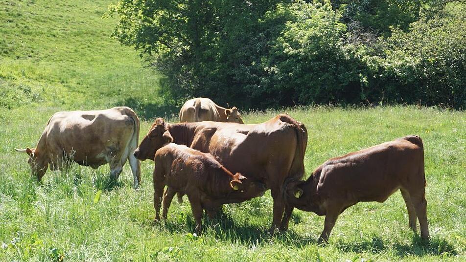 Auch wenn die Kälbchen noch so goldig sind. Mangers züchten das Gelbvieh  nicht als Streicheltiere. Der Nachwuchs wird geschlachtet und das  Fleisch über heimische Metzgereien und Direktvermarktung vom Hof aus  vermarktet. Doch nicht nur bei der Aufzucht sondern auch beim Schlachten  achten Mangers auf das Tierwohl und möglichst kurze Transportwege.