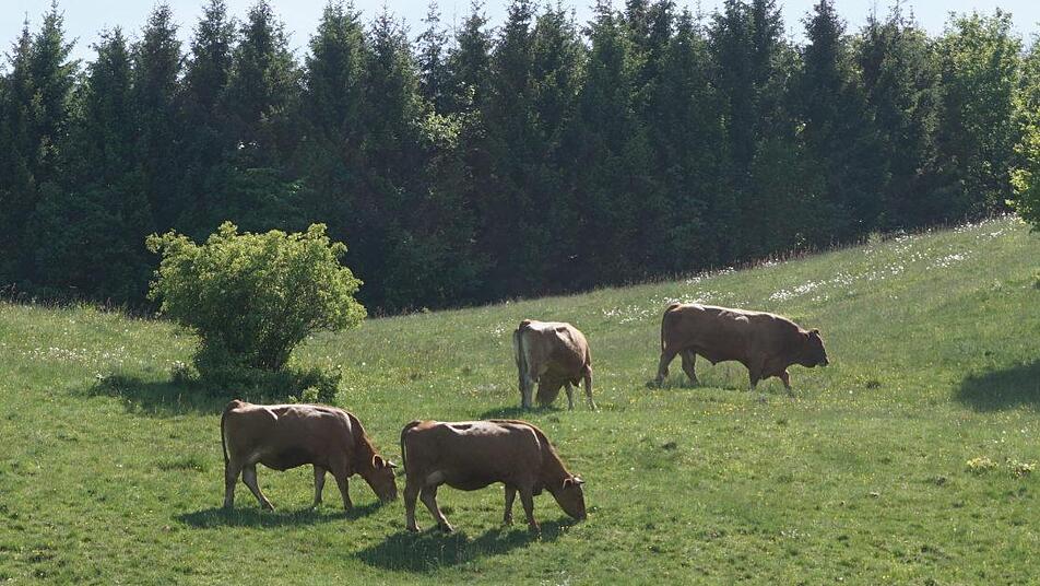 Die Kühe von Familie Manger dürfen im Sommer auf die Weide. Sie haben sich bewusst für das Gelbvieh entschieden: Sie wollen die alte Rasse erhalten und eine robuste Herde naturnah halten.