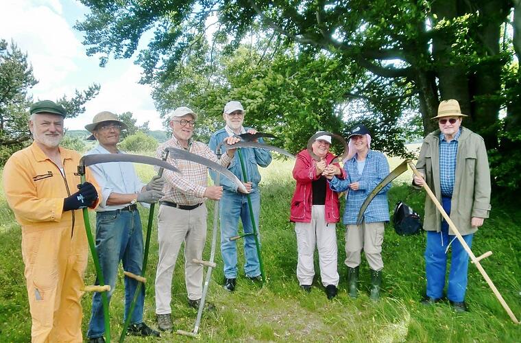 Mit Sensen gegen Lupinen Zum vierten Mal hatten 2014 wieder einige Mitglieder mit Sensen die Lupinen in der Rhön bekämpft, um der dort heimischen Pflanzenwelt neuen Raum zu geben, berichtete Naturschutzwart Klaus Neisser. Andere Themen seiner Veranstaltungen seien Tagungen und Vorträge gewesen zum Bau von Windrädern und der geplanten Stromtrasse durch die Rhön.