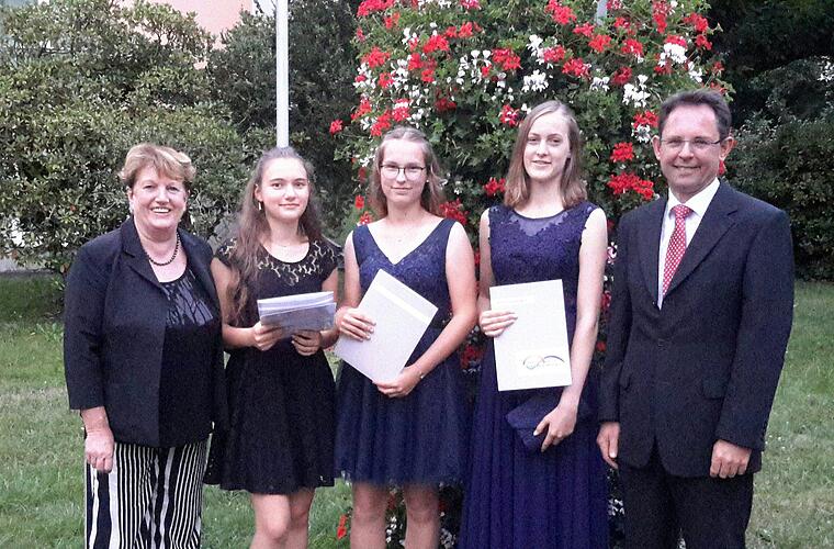 Eine Fülle von Auszeichnungen erhielten diejenigen Jugendlichen, die sich im Schulsanitätsdienst, im Sportmanagement-Team oder in der Schülermitverantwortung engagiert hatten. Für hervorragende Leistungen in der Abschlussprüfung wurden Paula Wirsing, Caroline Starz und Valeria Karle geehrt. Nachdem die Lehrkräfte von ihren Schützlingen noch einige symbolträchtige Geschenke erhalten hatten, endete mit der Übergabe der insgesamt 53 Zeugnisse der offizielle Teil der Abschlussfeier, deren Auftakt ein ökumenischer Gottesdienst in der Friedenskirche gebildet hatte.