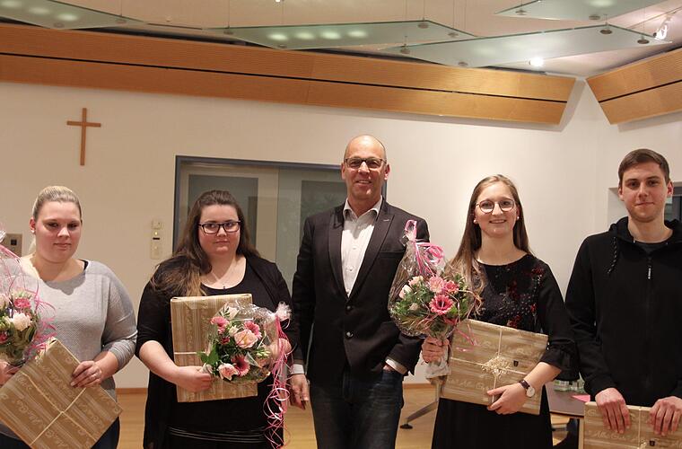 Marina Lochner hatte nach dem Abitur eine Ausbildung mit dem Schwerpunkt e-Learning im örtlichen Einzelhandel begonnen. Bereits nach eineinhalb Jahren konnte der berufliche Abschluss mit großem Erfolg abgelegt werden, wobei jetzt auch noch die Weiterbildung zum Handelsfachwirt ansteht. Jelana Hohmann-Jung wurde für ihre sehr gute Leistung in der Ausbildung zur Einzelhandelskauffrau bereits mit einer staatlichen Ehrung ausgezeichnet. Glückwünsche gab es nun auch von Bürgermeister Kleinhenz im Namen der Marktgemeinde. Matteo Beck und Sophia Trump wurden für ihre hervorragenden Ergebnisse im Abitur ausgezeichnet. "In Zeiten des Fachkräftemangels kann man diese Leistungen nicht hoch genug schätzen."