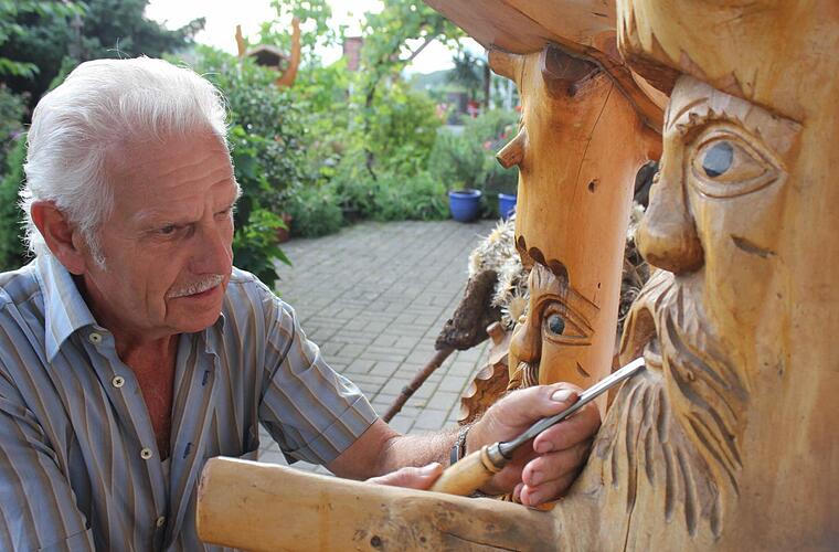 Karl Möller aus Motten präsentiert am Wochenende seine Schnitzarbeiten im Tennishaus. Der 74-Jährige schnitzt mit Vorliebe Gesichter in Wurzeln oder verwandelt Baumstämme gekonnt in Brunnen und Bänke. Seit etwa 30 Jahren geht er diesem Hobby nach, das er vorwiegend in den Wintermonaten betreibt. "Ich gehe mit meinen Schnitzereien eigentlich nicht auf Ausstellungen. Dafür sind die Sachen einfach zu schwer zu transportieren", sagt der gelernte Kunstbauschlosser. Seine Kunstwerke bringt er durch Mund-zu-Mund-Propaganda "an den Mann". Seine "Wurzelsepps" sind sogar in England und in den USA zu finden.