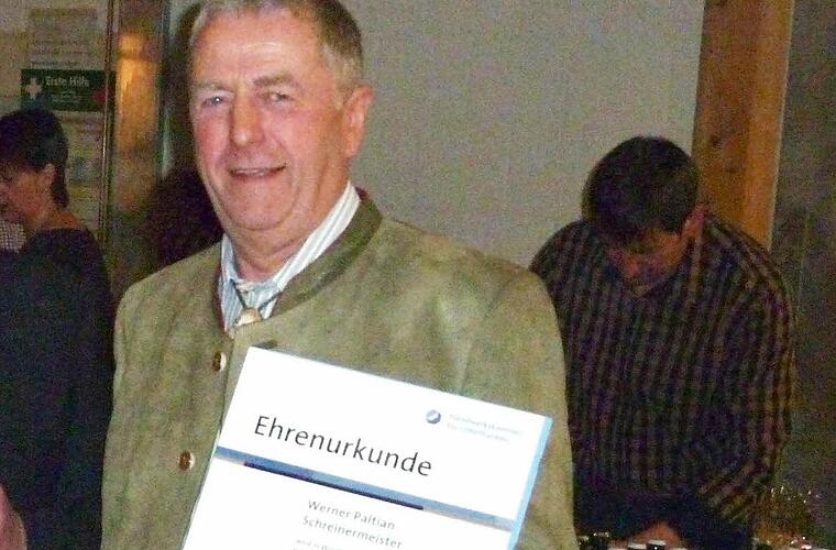Das Siegel der Handwerkskammer Unterfranken in Gold erhielt der Mottener Schreinermeister Werner Paltian verliehen. Anlass waren seine besonderen Verdienste um das Handwerk in Unterfranken. Er bekam damit die höchste Auszeichnung, die die Handwerkskammer an ihre Mitglieder vergibt.