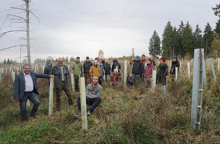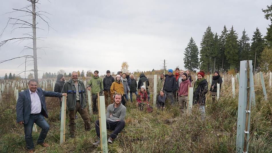 30 Schüler der Berufsfachschule für Holzbildhauer haben am Bauersberg Bäume auf einer Fläche gepflanzt, die durch Sturm "Kyrill" geschädigt wurde.