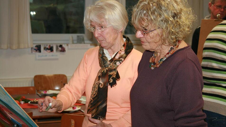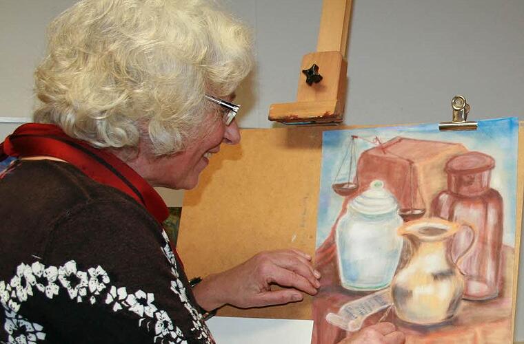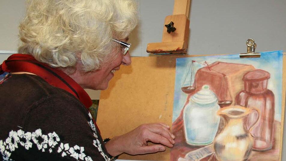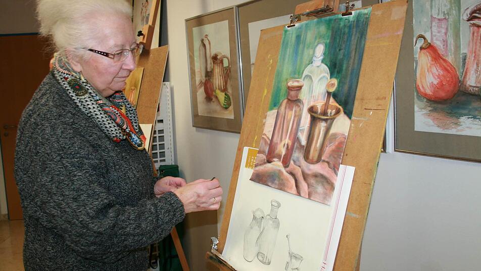 Es ist Montagnachmittag. Der Tag, an dem sich seit mittlerweile fünf Jahren regelmäßig etwa ein Dutzend Frauen und Männer im "Malkeller" des Schondraer Rathauses treffen, um ihrer Leidenschaft, der Malerei, nachzugehen. "Der Faltenwurf ist etwas Schlimmes", gibt Knuchel zu und hilft Elisabeth Brüns mit wenigen Strichen, die Tischdecke ihres Aquarells naturgetreu auf das Papier zu bringen.