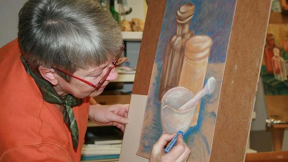 "Der treue Stamm", etwa zehn Frauen und Männer aus dem Kurs "Freude durch Zeichnen", folgte seiner Lehrerin in den Malkeller nach Schondra. Dort bemühen sich die Kunstbegeisterten jeden Montag, "dem hohen handwerklichen Anspruch", der von Knuchel sehr ernst genommen wird, gerecht zu werden. Die Freude ist dann umso größer, wenn die Malerinnen und Maler etwas Schönes "geschöpfert" haben, wie die Kunstpädagogin aus Einraffshof weiß.